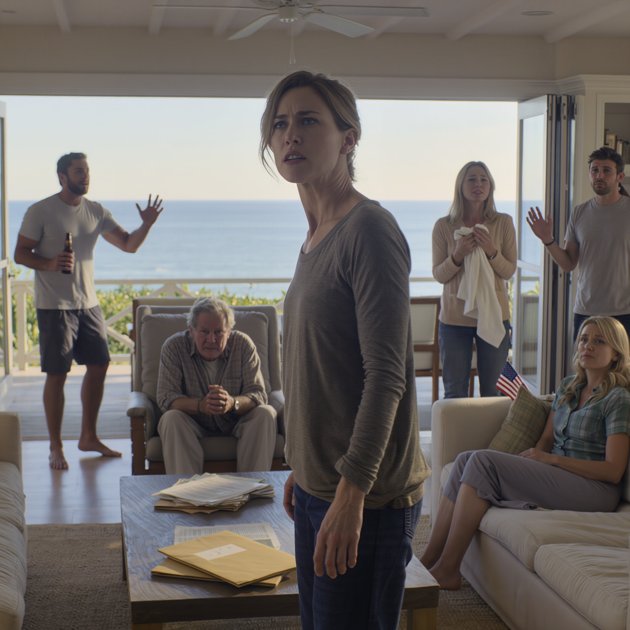 That’s what my brother‑in‑law yelled at my father in the middle of the $425,000 seaside house I’d bought as a surprise for my parents’ fiftieth wedding anniversary. Dad’s shoulders folded in on themselves, his hand still resting on the back of the chair he’d just been told to vacate. Behind him, the stainless‑steel fridge hummed quietly, a faded American flag magnet holding up his handwritten grocery list. On the counter, a sweating glass of iced tea left a ring beside the celebration cake I’d picked up that morning from a bakery off Highway 1. My mother’s tears soaked the lemon‑printed dish towel she gripped like a white flag. Somewhere in the background, Sinatra crooned from the little Bluetooth speaker she’d brought from their apartment, his voice completely at odds with the scene.