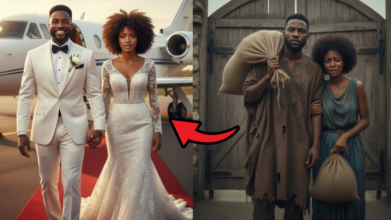 Imagine this. The same beggar everyone mocked. The same worthless man a cruel stepmother force her maid to marry just to humiliate her. Two weeks later, he returns not in rags, but in a private jet with guards, red carpet, and cameras flashing. And the shock. The maid they once despised is now walking into the jet. his bride, his queen. This is not just a wedding.